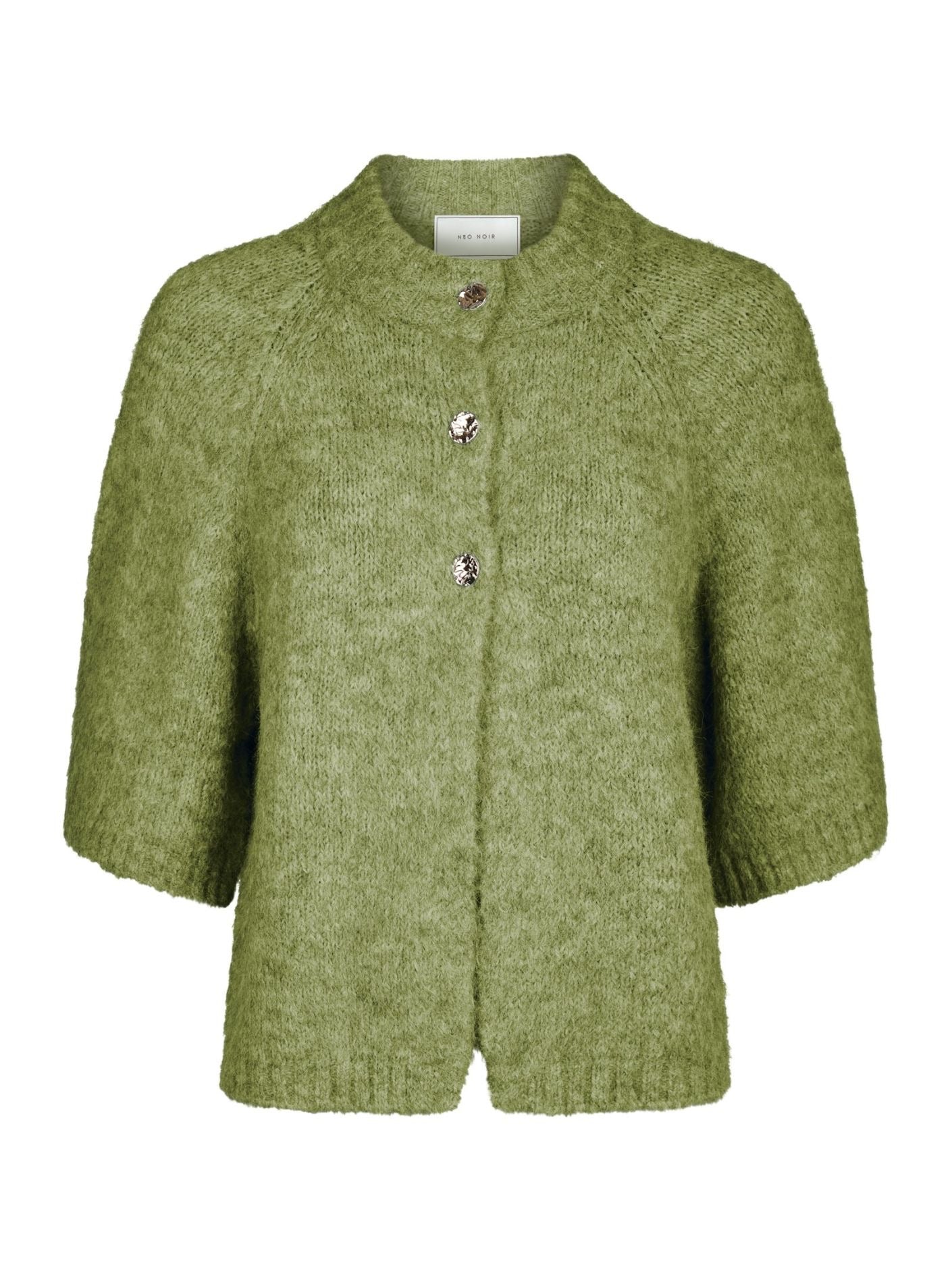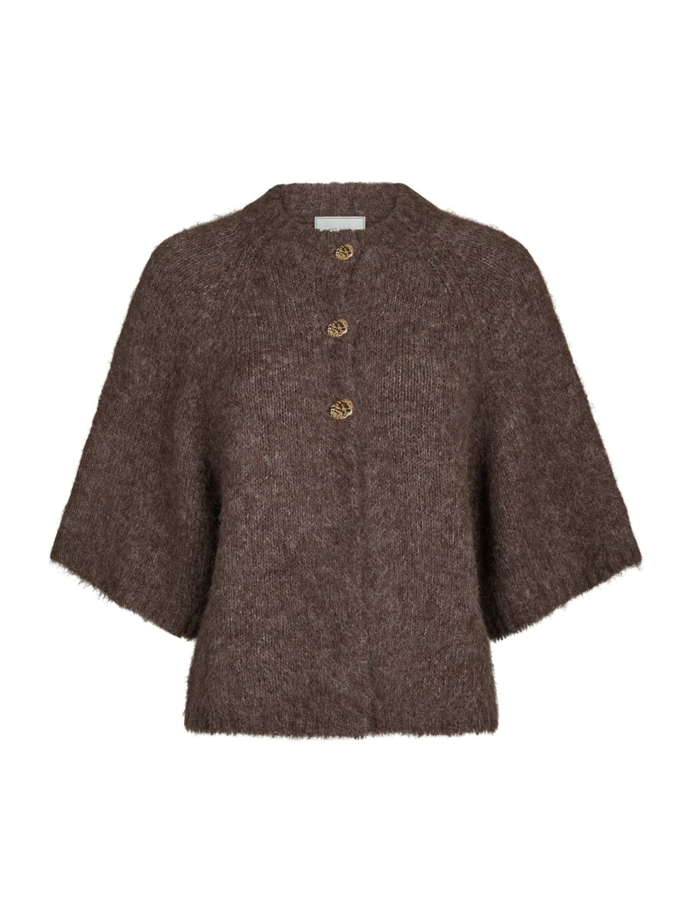 Boxig stickad cardigan med vida ärmar och fina dekorknappar framtill. Kvaliteten är mjuk med en fluffig look.