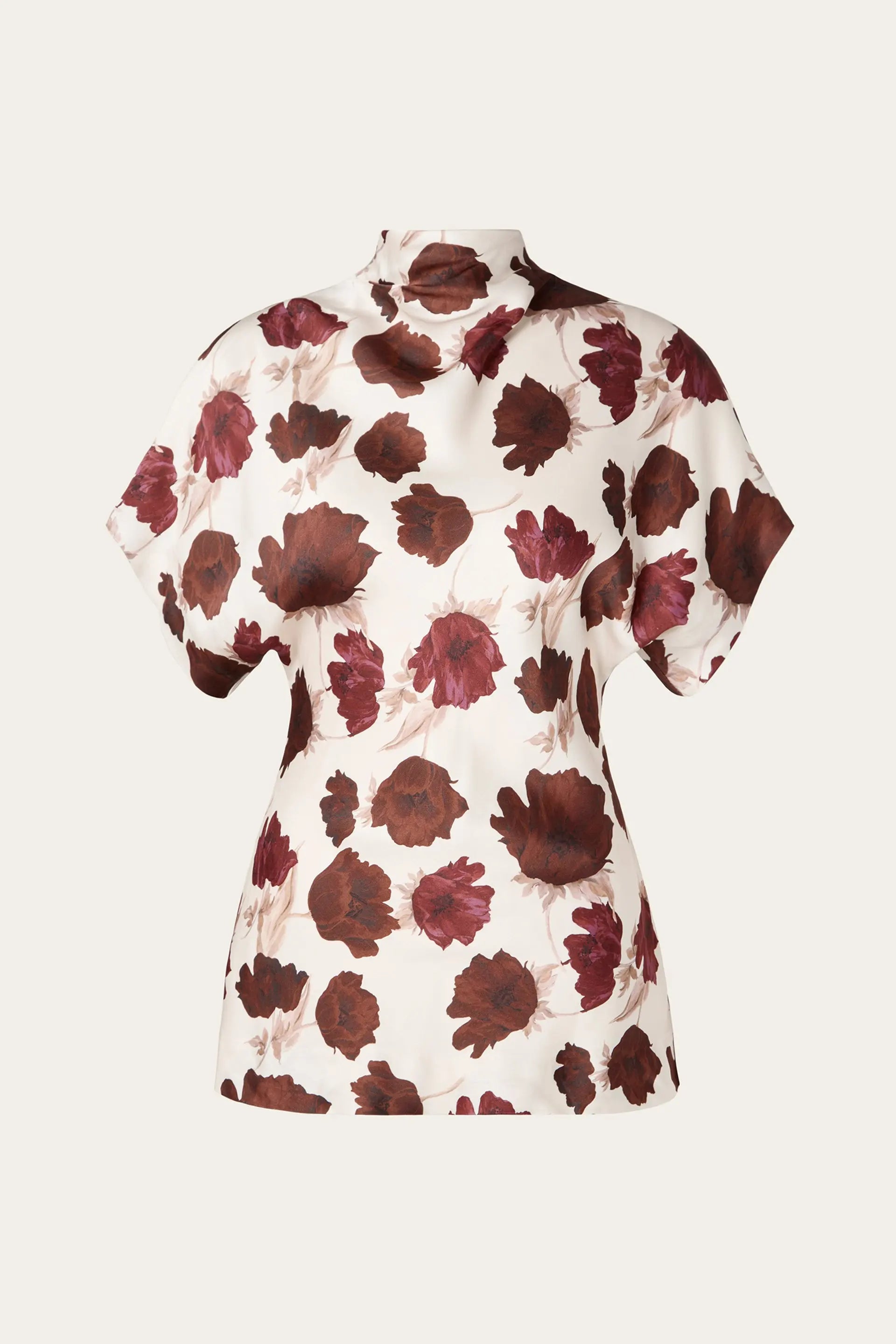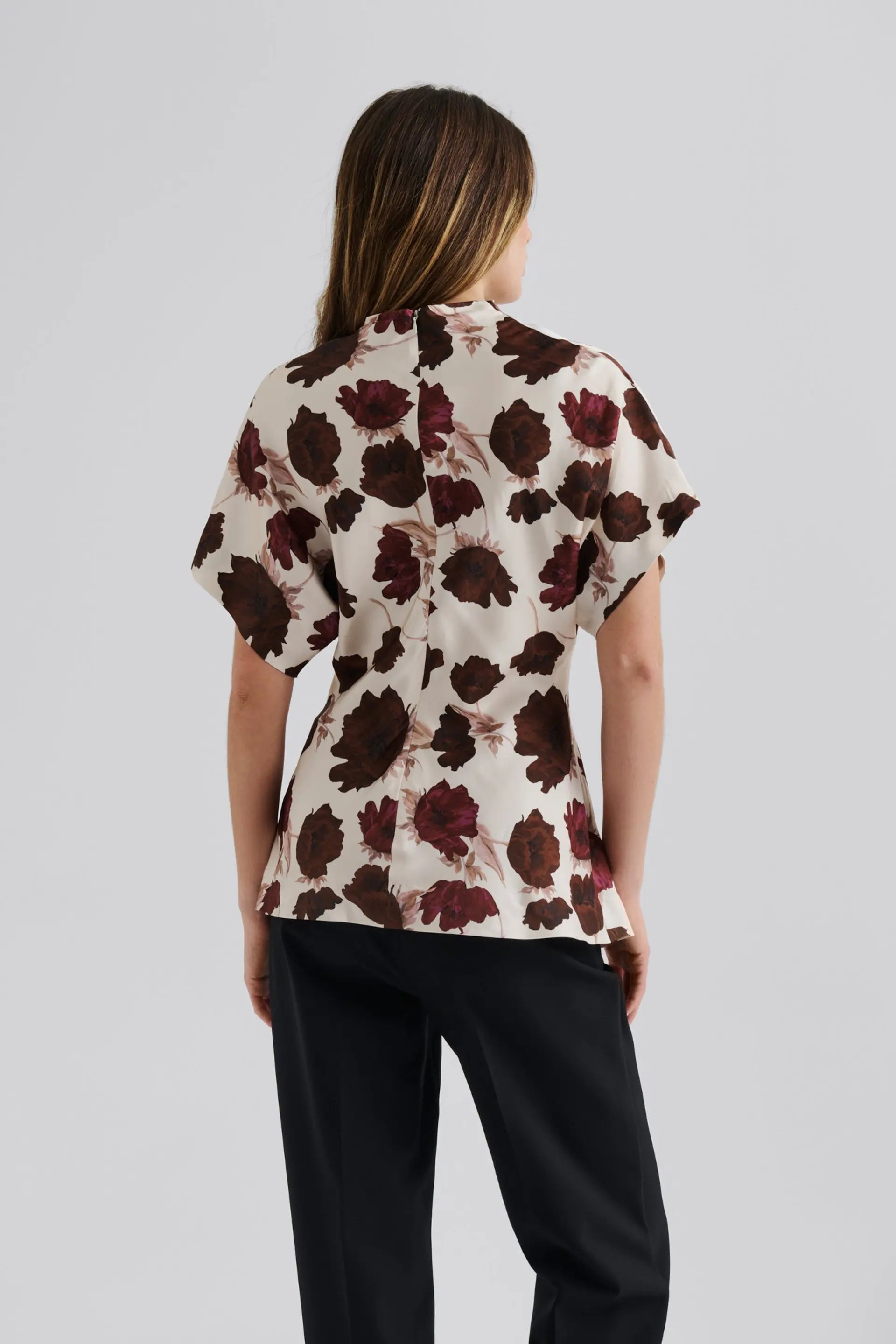 Fantastisk fin print på Otilia top från Malina! Draperad fram med halvpolo, kort ärm och dold dragkedja bak.