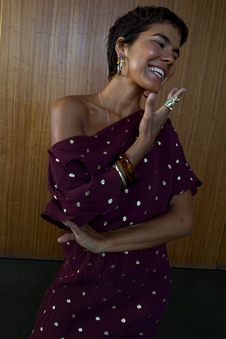 Vår bästsäljande Tilly-klänning i en snygg ny färgställning! Den lätt avslappnade silhuetten gör att du kan bära den off-shoulder medan det stretchiga plisserade tyget och den elastiska midjan gör den så praktisk och perfekt för ett kvällsevenemang!