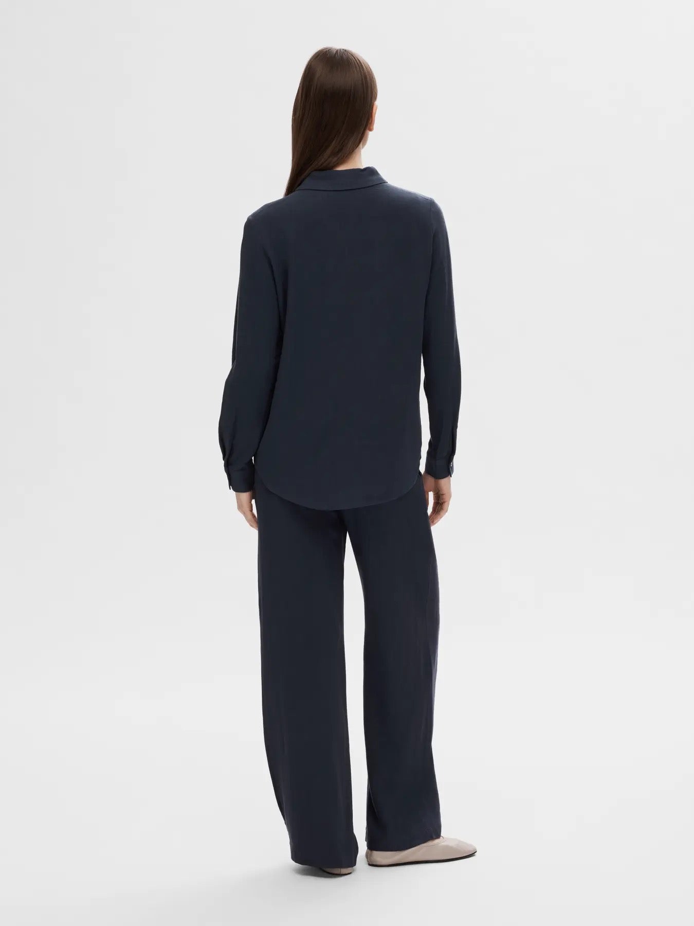 Vill du se snygg ut medan du känner dig lugn? Då är lösningen en löst sittande, långärmad skjorta. Denna avslappnade skjorta är gjord i en underbar linneblandning och har en klassisk skärning som kommer att vara trendig år efter år. Prova att styla med ett par avsmalnande byxor och ett par spetsiga ballerinaskor för en avslappnad men elegant ensemble.